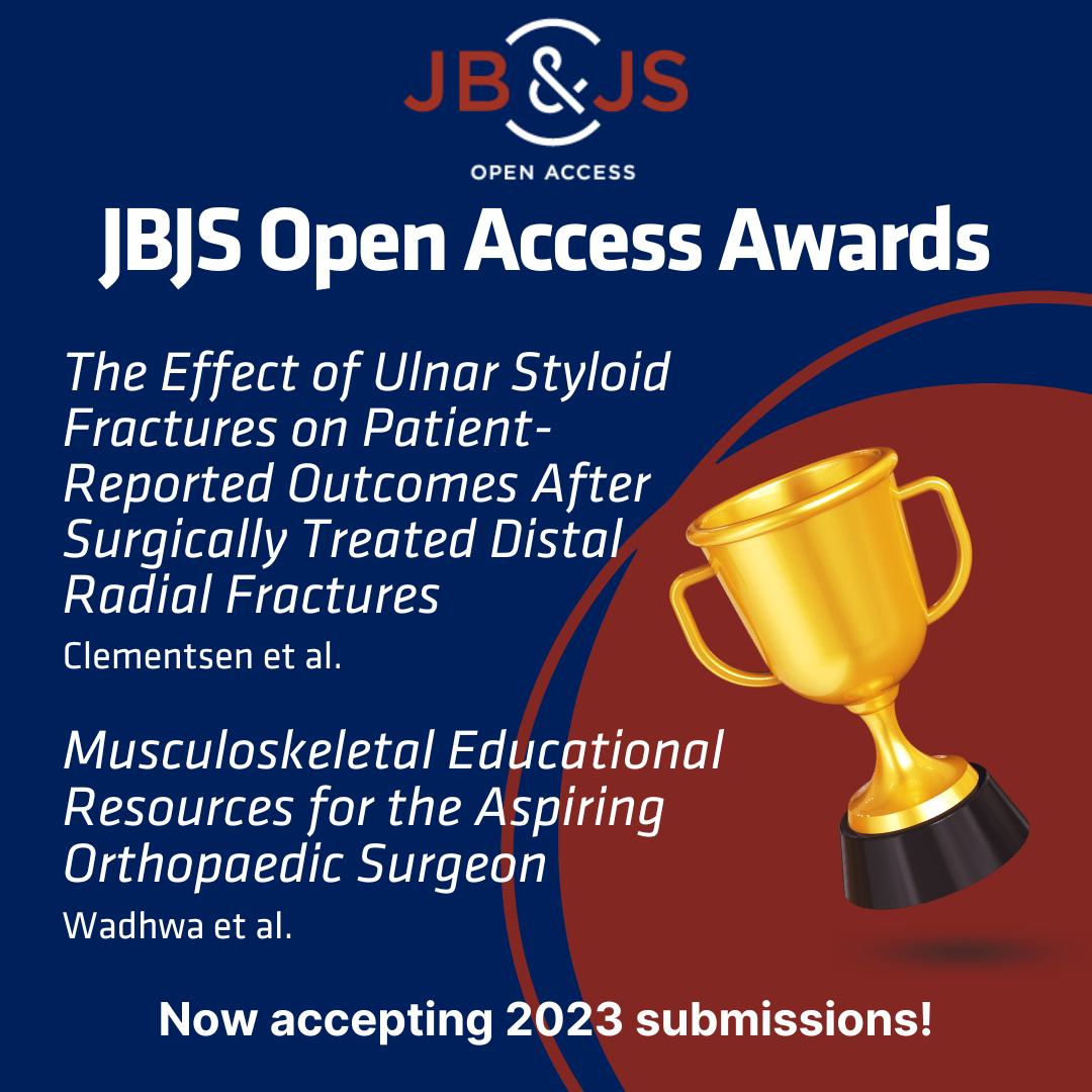 Learn more about JBJS Open Access and the awards: read the editorial from 2022 outlining the criteria.